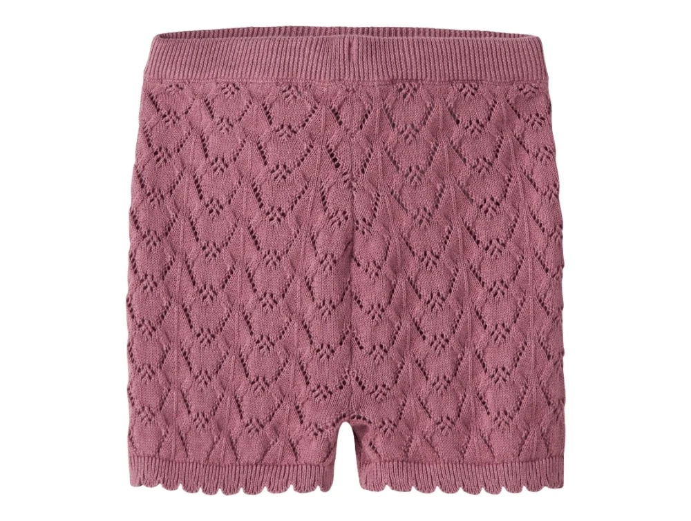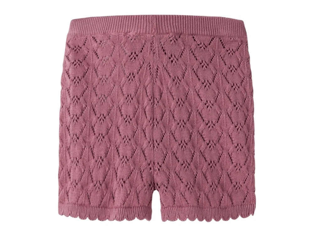 Strikshorts i rosa nuance (mesa rose) fra Name It med fint hulmønster.