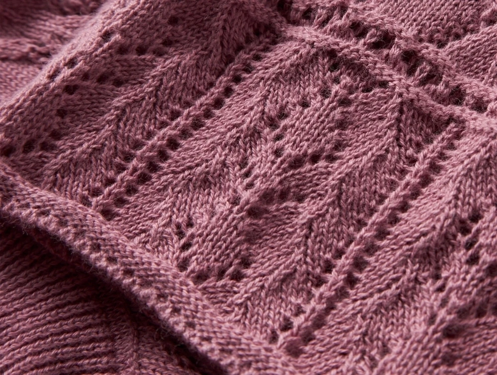 Den lette pointelle strik har en åben struktur, som giver et luftigt udtryk og en behagelig kvalitet. Materialet består af bomuld (økologisk), som føles blødt mod huden.