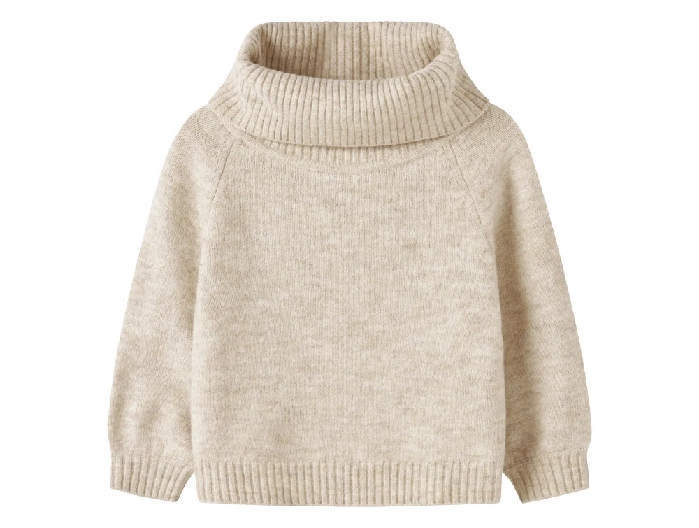 Striktrøje i beige nuance (peyote melange) fra Name It med høj krave.