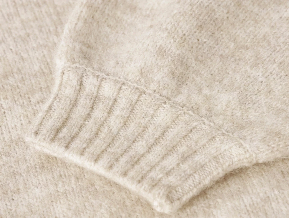 Trøjen er lavet i en blød materialeblanding med uld og har almindelig pasform. Den er designet med ribkanter ved hals, ærmer og bund, som sikrer en god pasform og et klassisk udtryk.