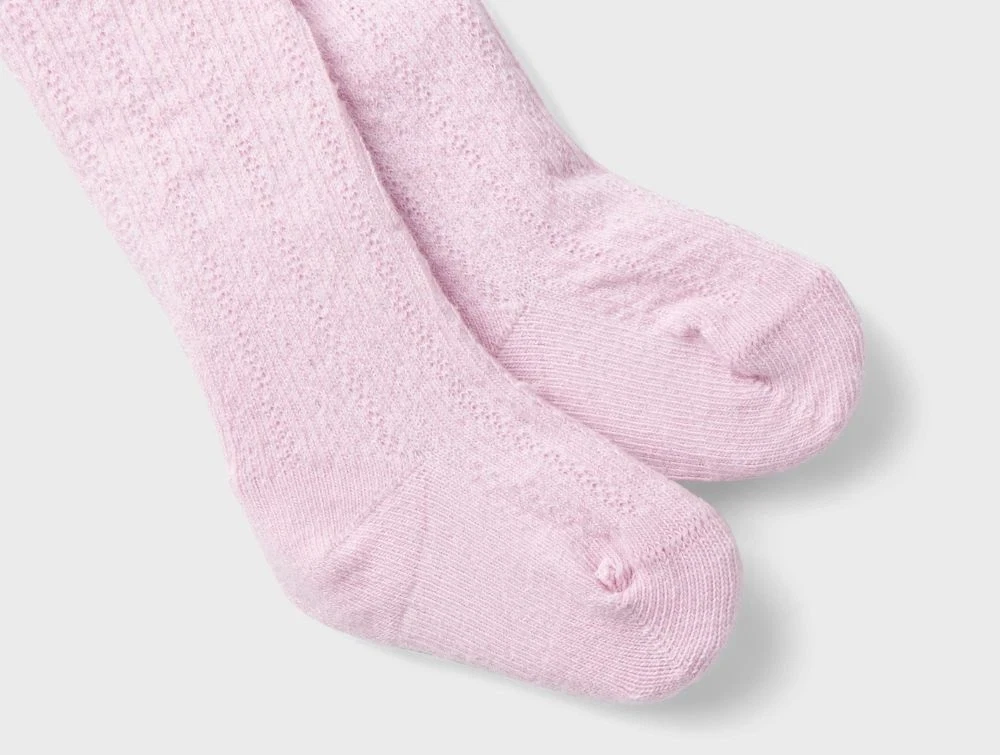 Lyserød bomuldsstrømpebuks med hulmønster fra Name it 13236498 corsageLyserød bomuldsstrømpebuks med hulmønster fra Name it 13236498 corsage bagfrahulmønster og strikket fodfacon i lyserøde bomuldsstrømpebukser fra Name it 13236498 corsage