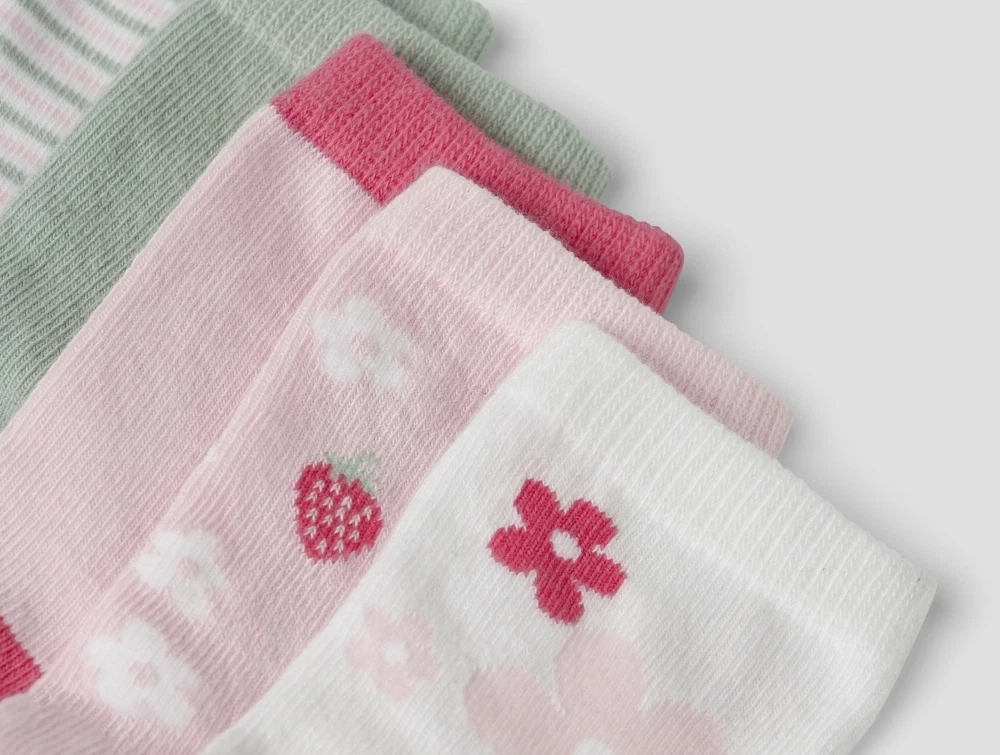 Name It strømper i lyse farver med blomster og jordbær – 5-pak
