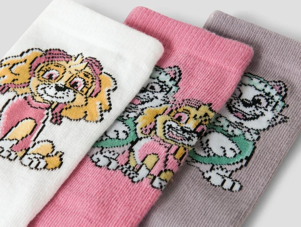 3-pak Paw Patrol strømper fra Name It i rosa, hvid og lilla