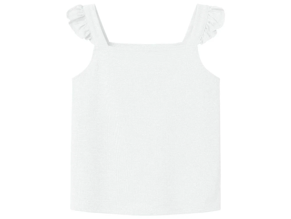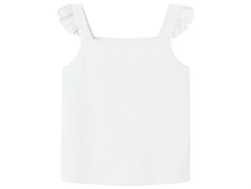 Hvid kort stroptop fra Name It med glitter og små flæsedetaljer.