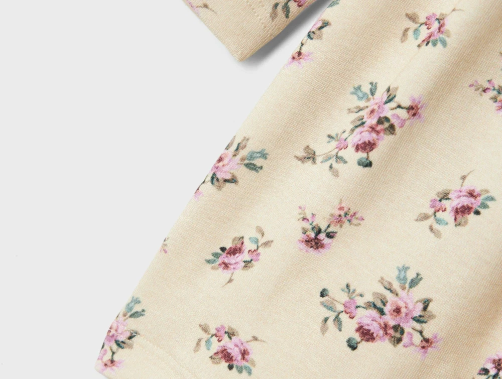 Kjole i farven summer sand med blomsterprint fra Name It.
