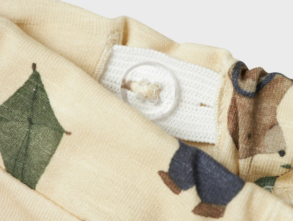 Bløde bukser i farven summer sand med sødt print af dyr og med drager fra Name It.