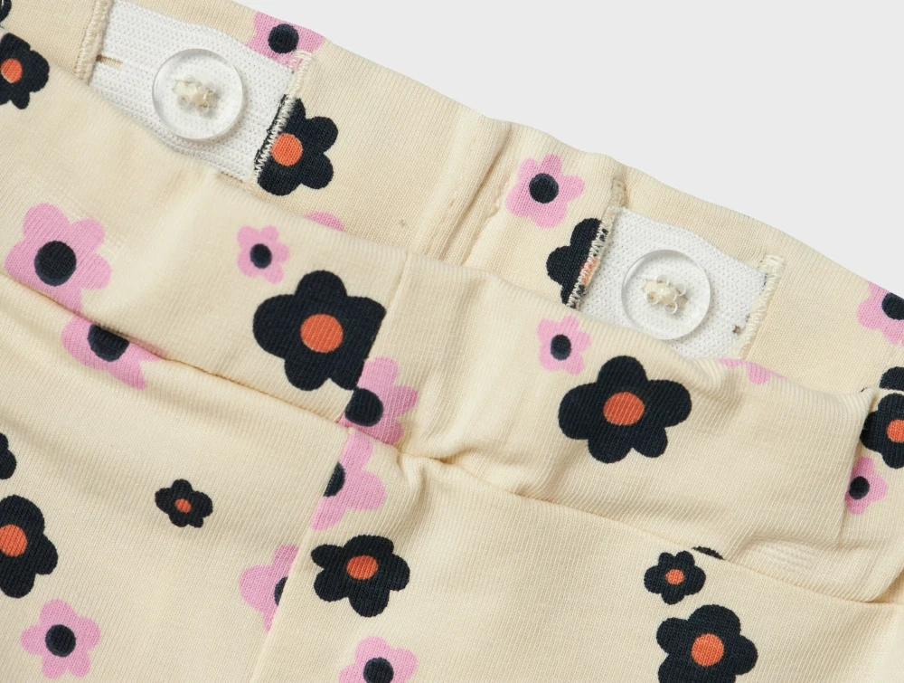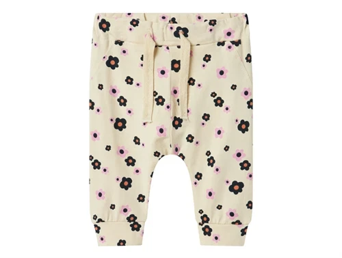 Bløde bukser i farven summer sand med blomsterprint fra Name It.