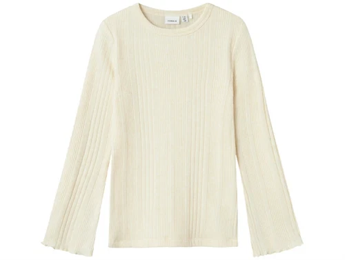 Skøn ribstrikket top i farven summer sand med slids i ærmer fra Name It.