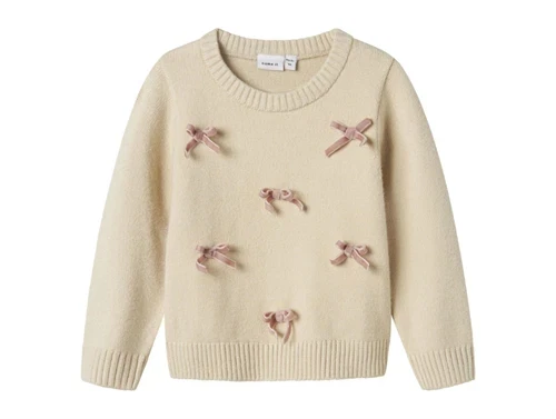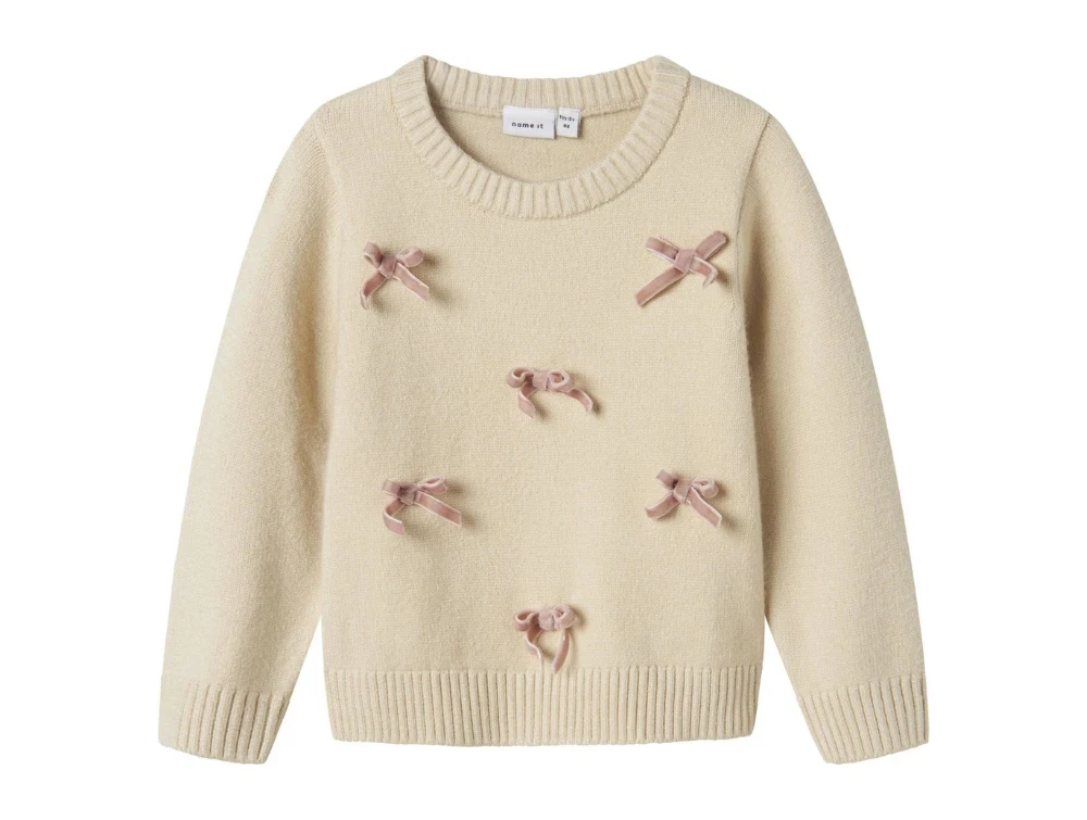 Sød strik pullover med sløjfer i farven summer sand fra Name It.