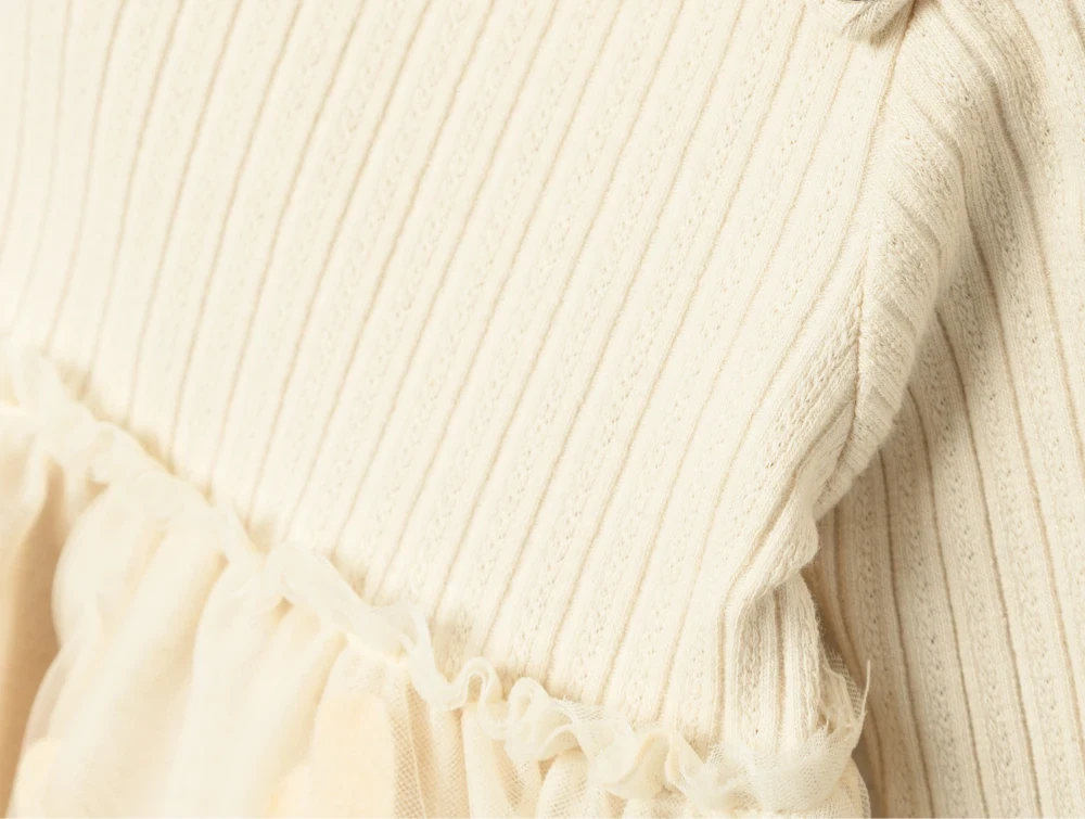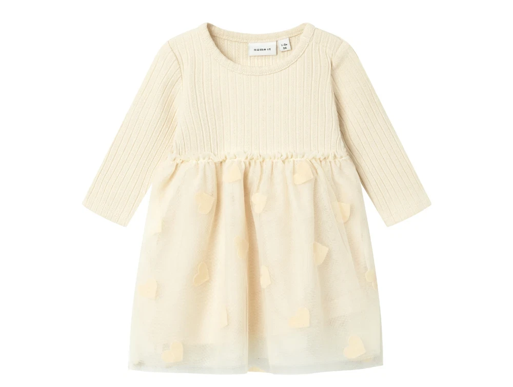 Kjole i farven summer sand med tylskørt med hjerter fra Name It.