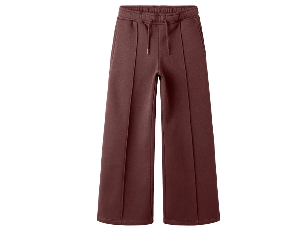 Sweatbukser i mørk rød nuance fra Name It med brede ben og justerbar talje.