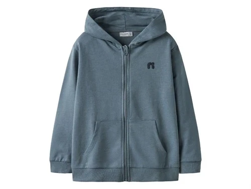 Basis sweatcardigan i blå med hætte og lynlås fra Name It 13244055 blue mirageBasis sweatcardigan i blå med hætte fra Name It 13244055 blue miragelogoprint på blå sweatcardigan med hætte, kængurulommer og lynlås fra Name It 13244055 blue mirage