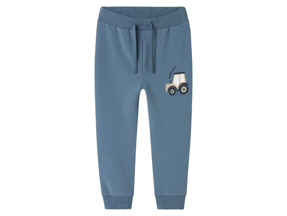 Sweatpants i blå med traktorprint og justerbar talje fra Name It: