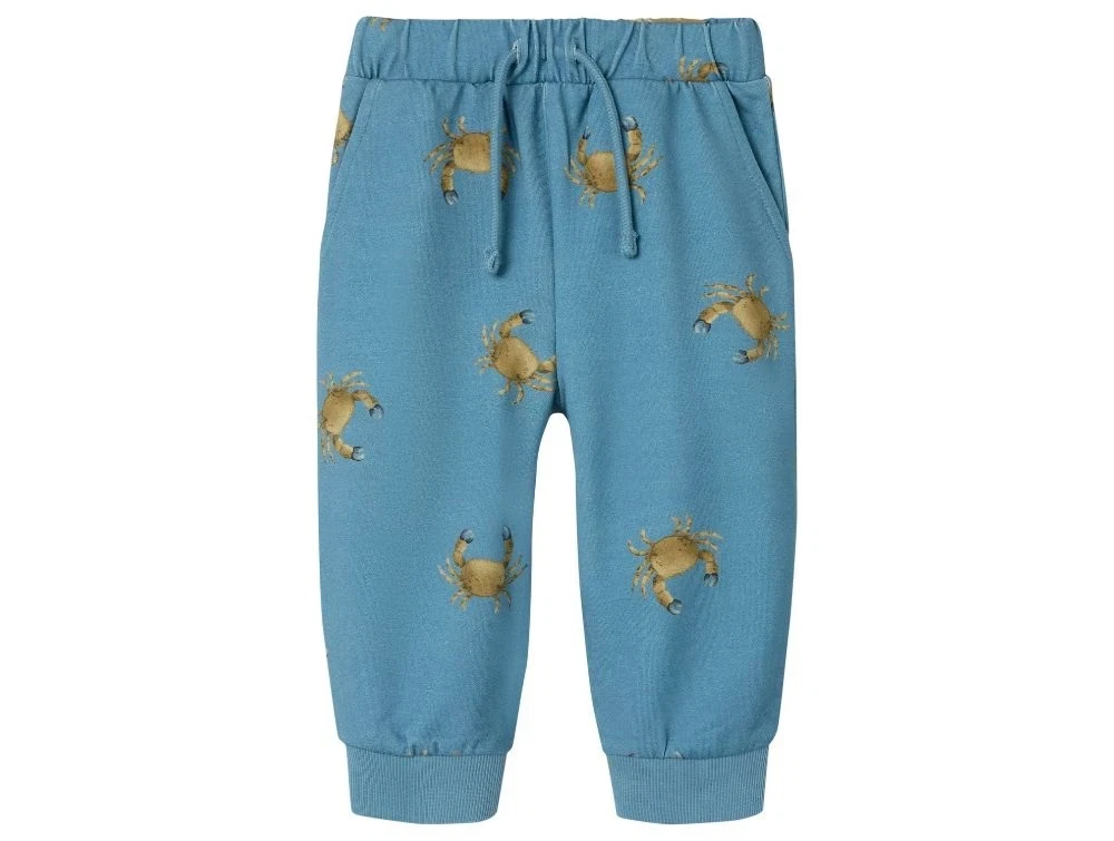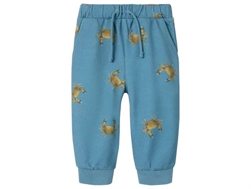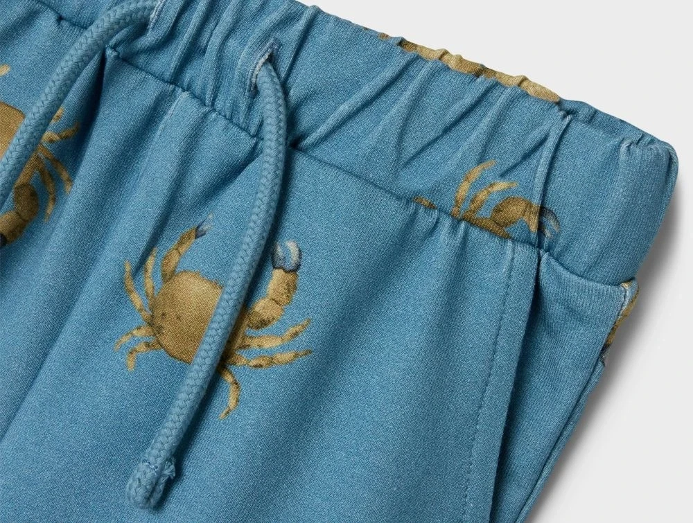 Sweatpants i blå (spring lake) med krabbeprint fra Name It.