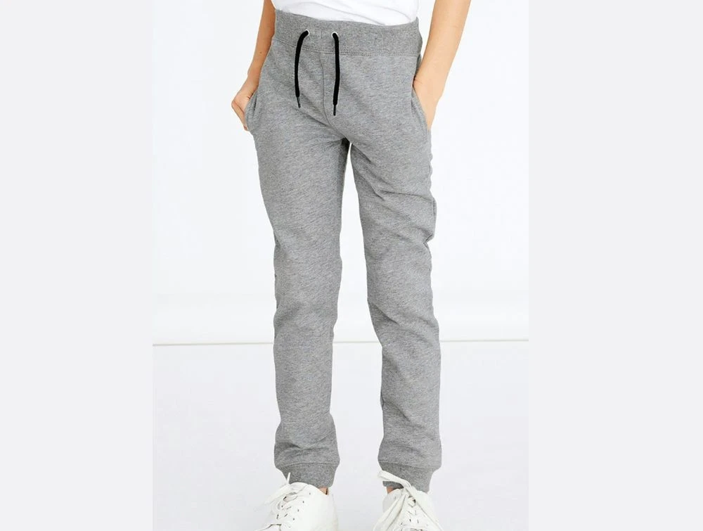 Name It sweatpants i grey melange båret af barnName It sweatpants i grey melange set forfraName It sweatpants i grey melange set bagfraDetalje af snøre i Name It sweatpants i grey melangeRibkant og sømme på Name It sweatpants i grey melange