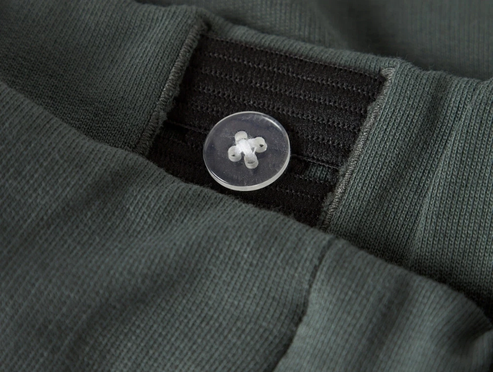 Bukserne er fremstillet i unbrushed sweatkvalitet med glat yderside og løkker på indersiden, som giver en blød og behagelig fornemmelse mod huden. Taljen er justerbar, så pasformen nemt kan tilpasses.