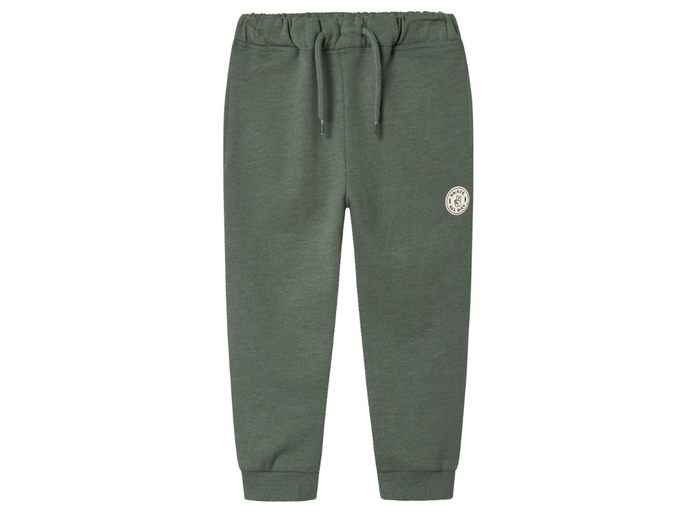 Sweatpants i grøn nuance (laurel wreath) fra Name It med lille logo print på låret.