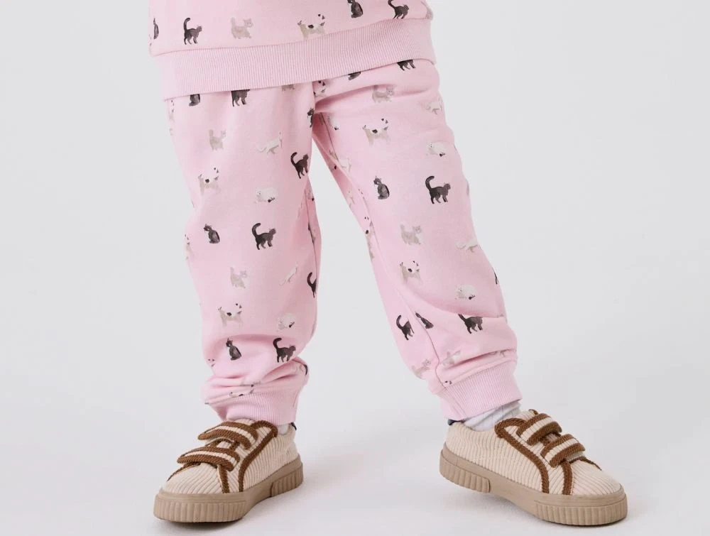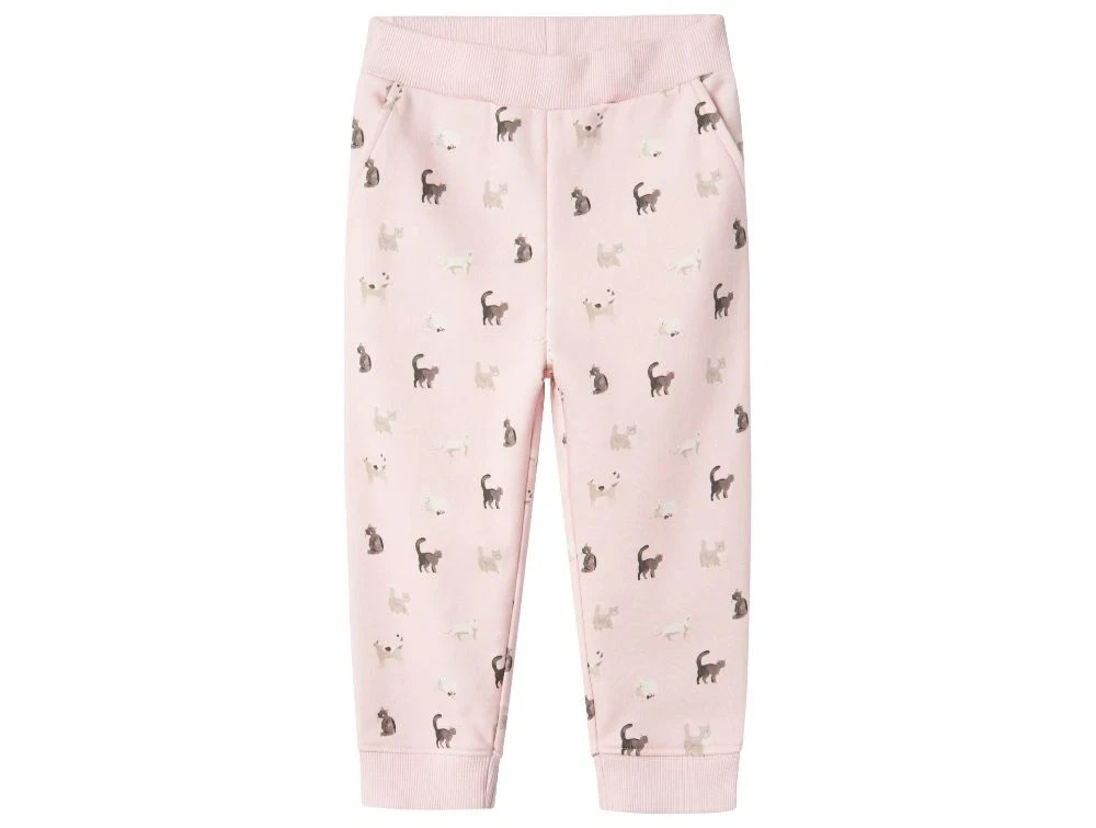 Sweatpants i lyserød (Ballerina) med katteprint fra Name It.