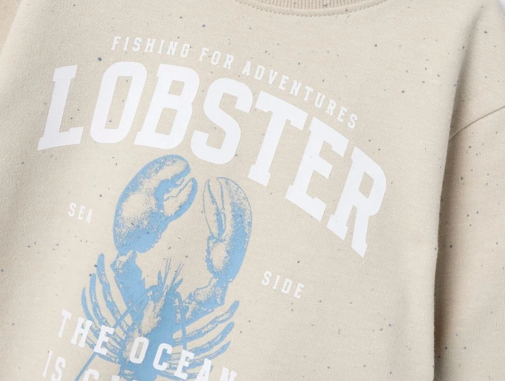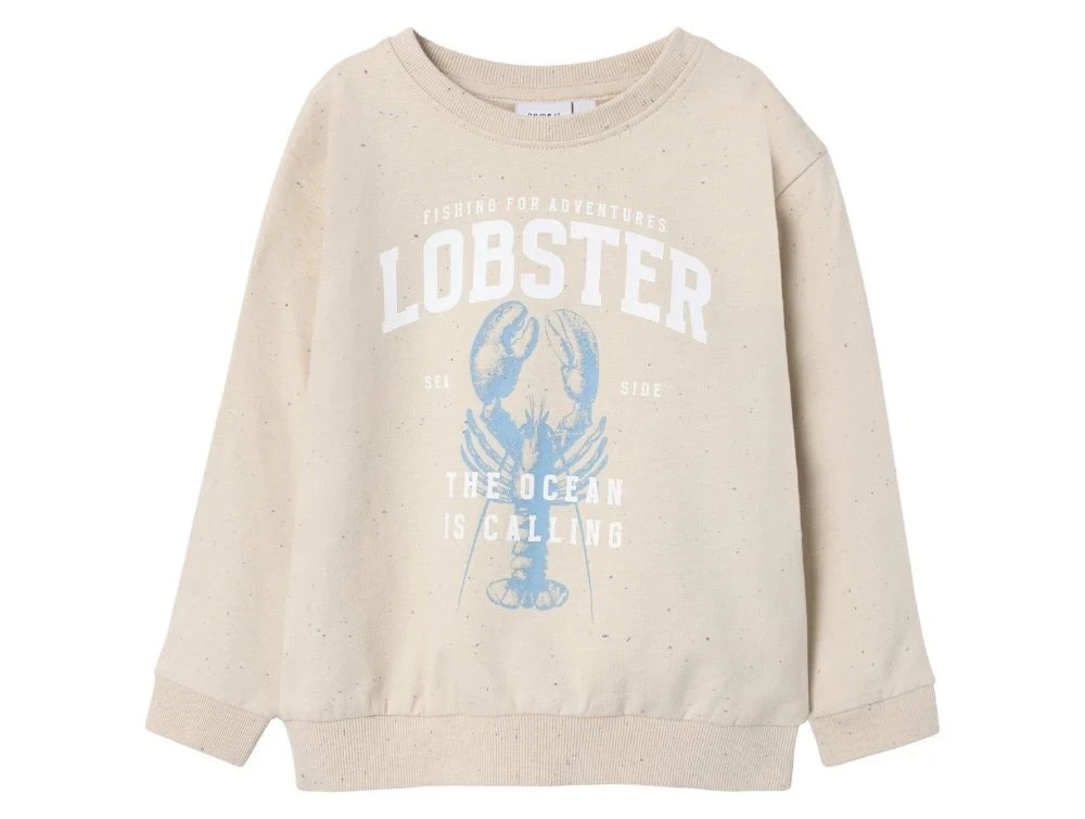 Beige sweatshirt fra name It med print af en hummer 13241258 peyoteblåt og hvidt hummer print på beige sweatshirt fra name It  13241258 peyote
