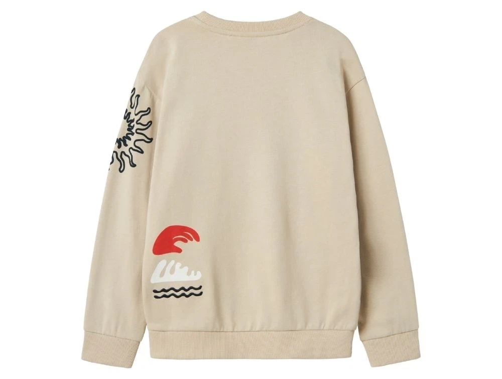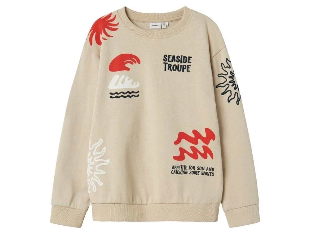 Sweatshirt i farven beige (peyote) med strandelementer i print og broderi fra Name It.