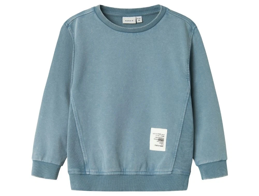 Blå sweatshirt fra Name It 13241234 spring lakeLille hvid mærkat på blå sweatshirt fra Name It 13241234 spring lakeDreng i blå sweatshirt fra Name It 13241234 spring lake