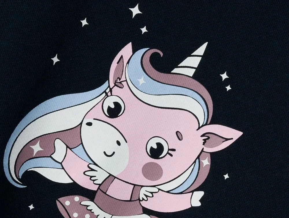 Mørkeblå (dark sapphire) sweatshirt med print af en dansende ballerinafigur.