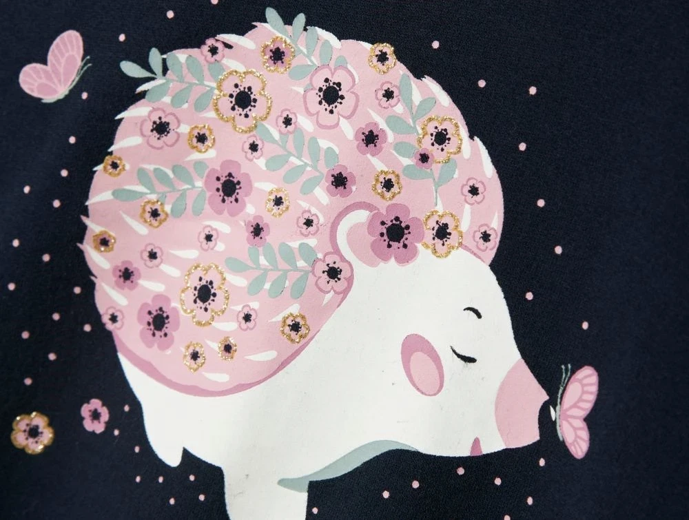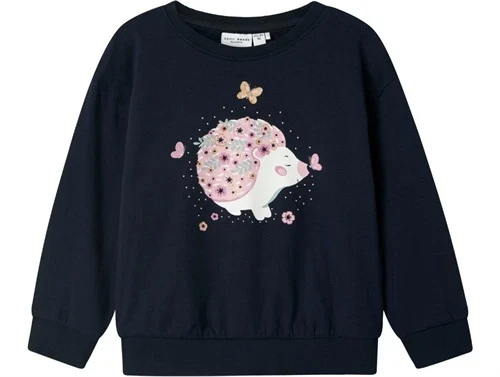 Sweatbluse i farven dark sapphire med print af pindsvin fra Name It.