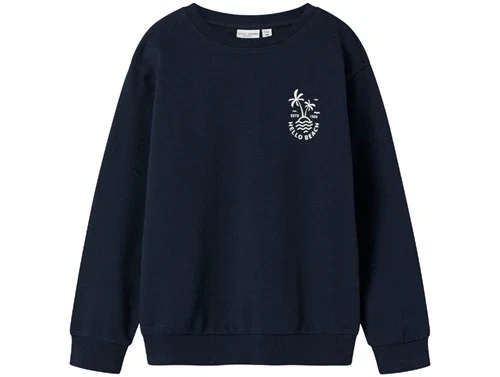 Blød og behagelig sweatshirt fra Name It i en klassisk mørkeblå farve. Sweatshirten er lavet af 100% bomuld i en ubørstet sweatkvalitet med en glat overflade og en let struktur på indersiden, der sikrer høj komfort.