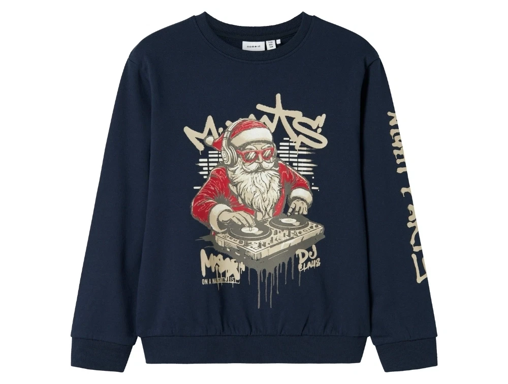Name It sweatshirt i mørkeblå med julemand DJ print