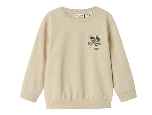 Sweatshirt i beige (peyote tiger) fra Name It med sejt tigerprint foran.