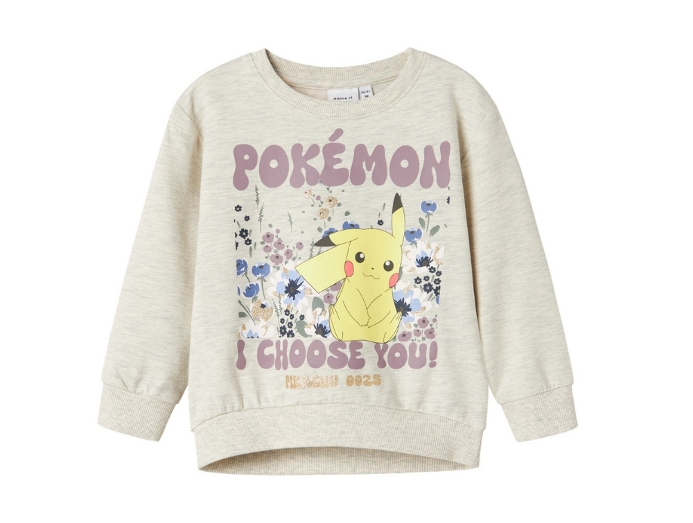 NAME IT MINI sweatshirt råhvid (peyote melange) med Pikachu print