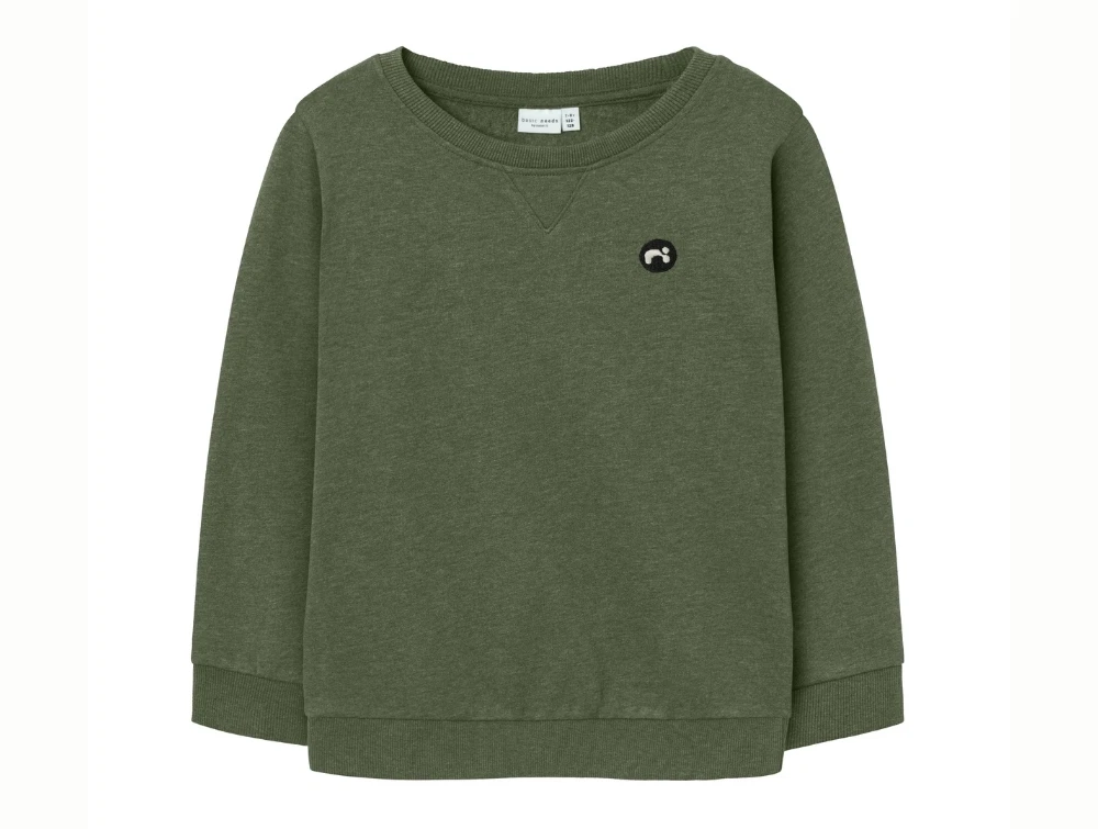 Sweatshirt i grøn nuance (rifle green) fra Name It med diskret badge på brystet.