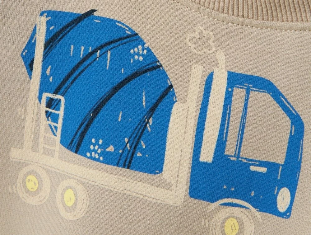Sandfarvet (pure cashmere) sweatbluse med print af arbejdskøretøjer fra Name It.