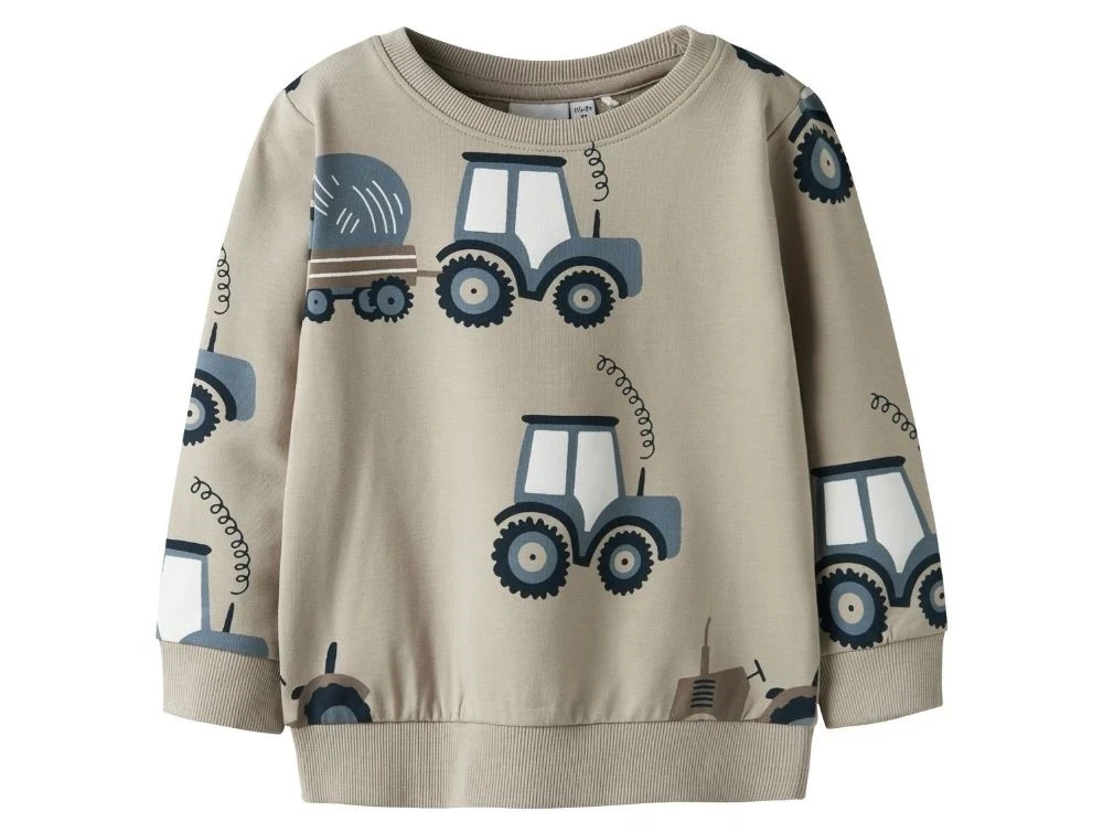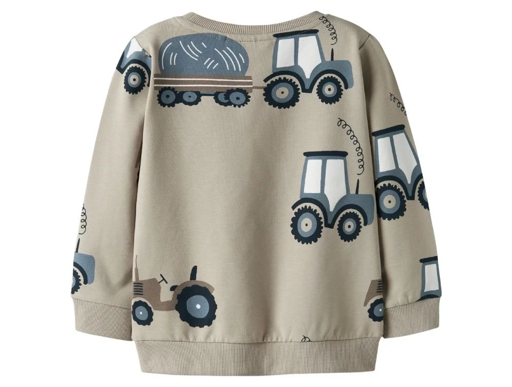 Sweatshirt i sandfarvet (pure cashmere) med print af traktorer fra Name It.