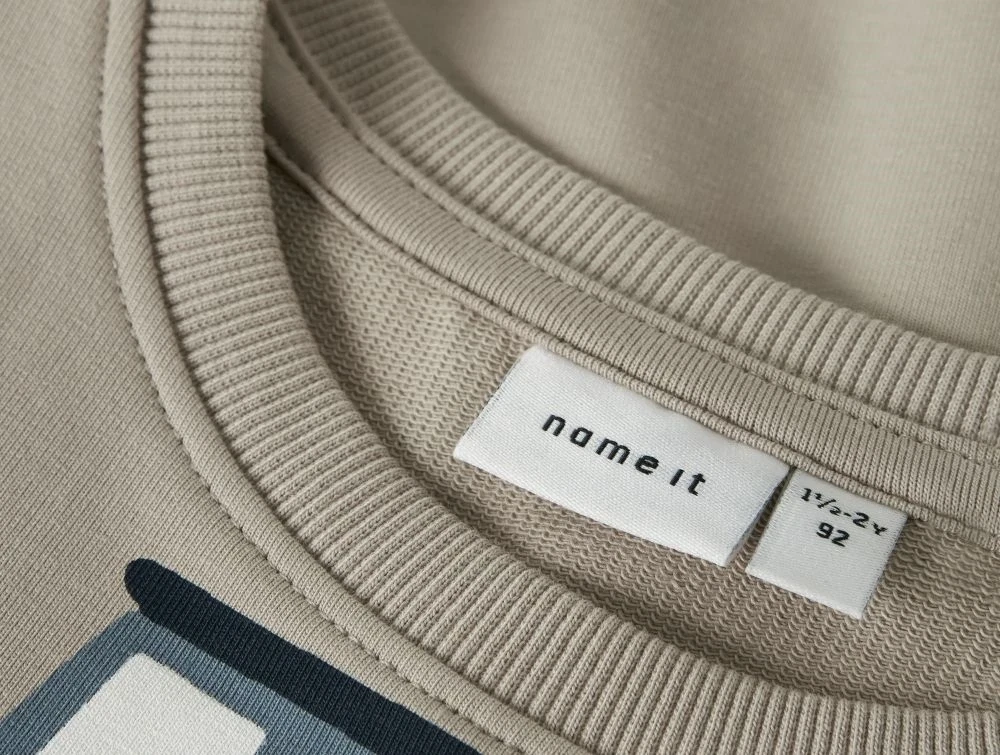 Sandfarvet sweatshirt med traktorprint fra Name It 13247018 pure cashmereSandfarvet sweatshirt med traktorprint fra Name It 13247018 pure cashmere bagfraRibkant på sandfarvet sweatshirt med traktorprint fra Name It 13247018 pure cashmere