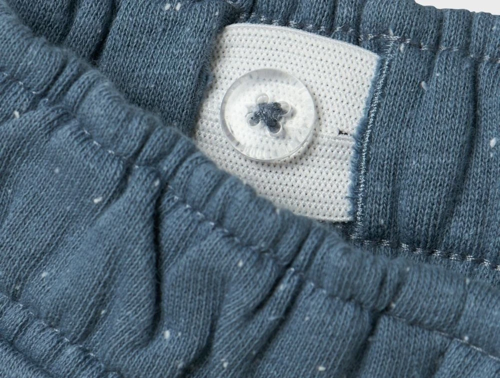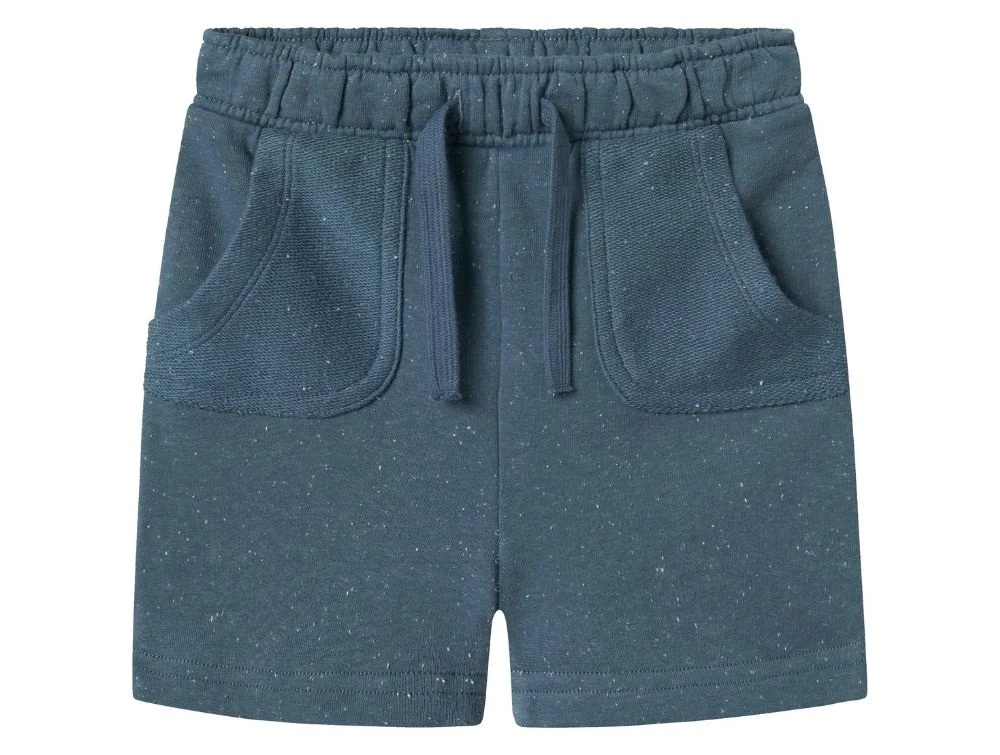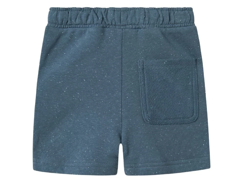Blå sweatshorts med små lyse nister, lommer og bindebånd fra Name It 13243314 blue mirageBlå sweatshorts med små lyse nister og en baglomme fra Name It 13243314 blue mirageJusterbar knaphulselastik i linningen på blå sweatshorts med små lyse nister fra Name It 13243314 blue mirage