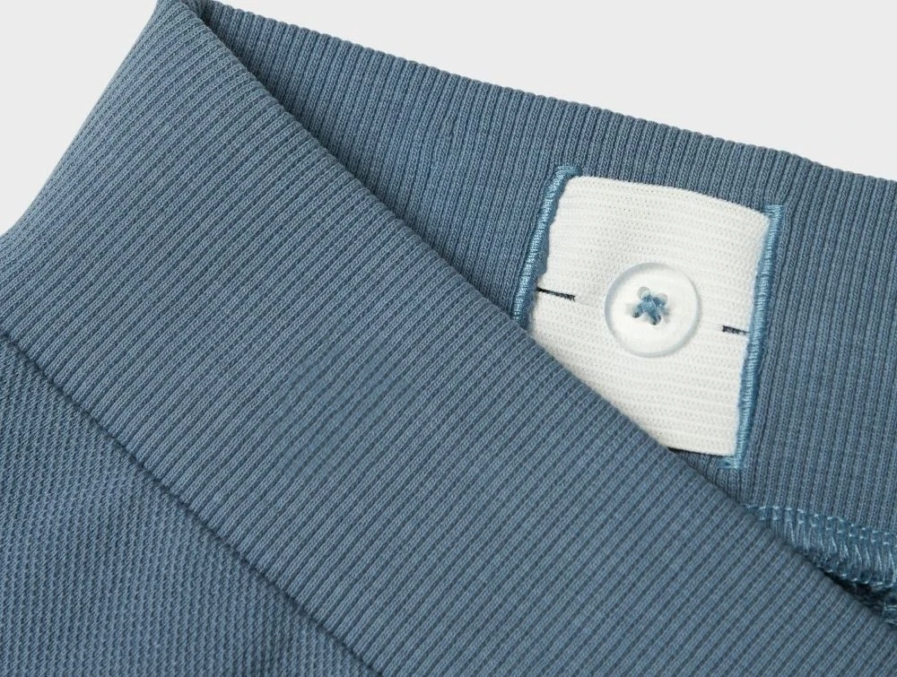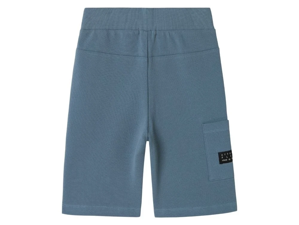 Blå sweatshorts fra Name It med lommer 13230041Blå sweatshorts bagfra  med lommer fra Name It 13230041Justerbar knaphulselastik i blå sweatshorts fra Name It 13230041 blue mirage