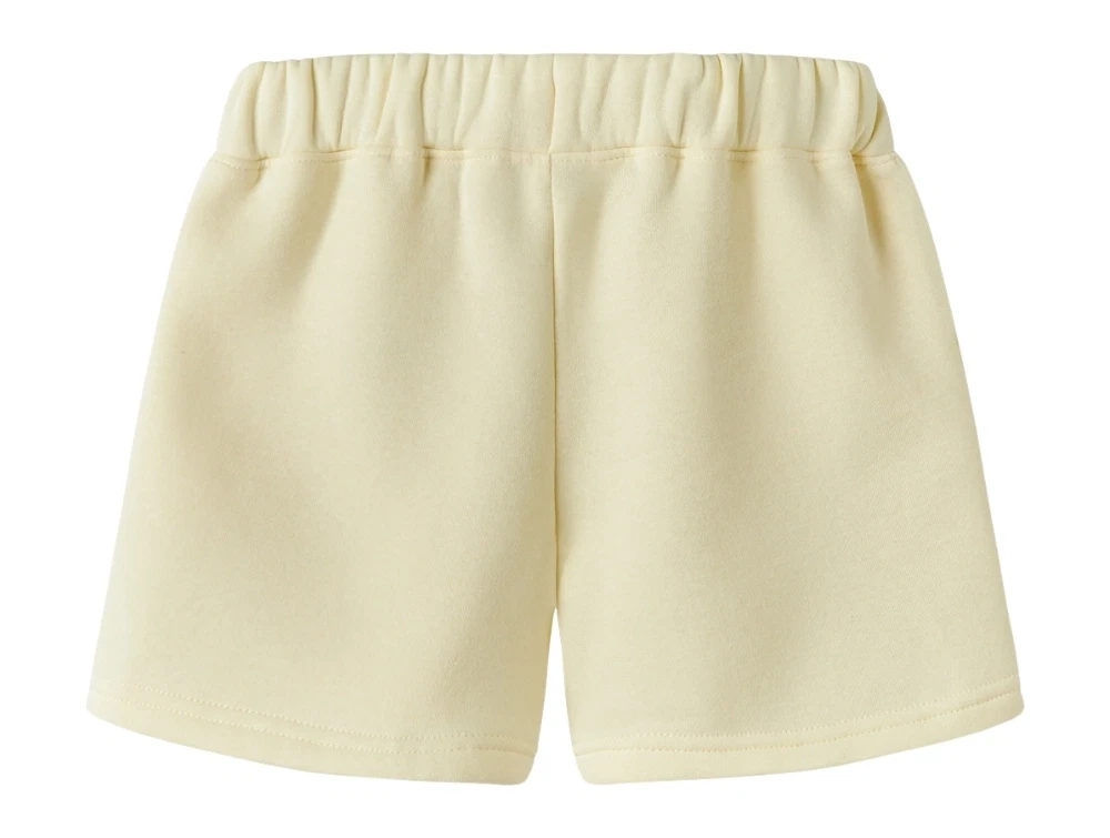 Name It sweatshorts i gul nuance til børnName It sweatshorts pear sorbet med sidelommerName It sweatshorts pear sorbet detalje af talje med knaphulselastikName It sweatshorts pear sorbet set bagfra