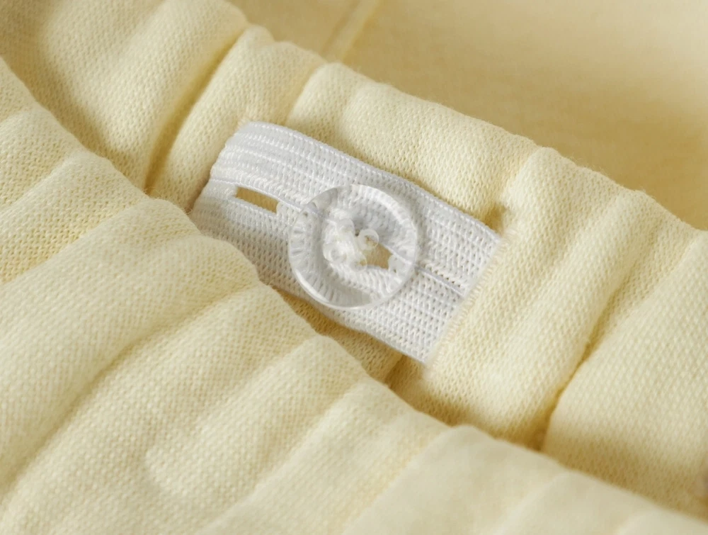 Materialet kombinerer bomuld og genanvendte fibre, hvilket giver en blød og fleksibel kvalitet. Den let børstede inderside giver en blød overflade mod huden.