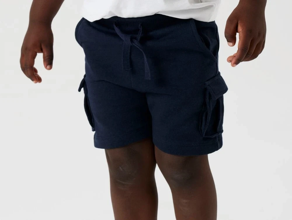 Bløde cargoshorts i sweatkvalitet med to udvendige lommer og to sidelommer. Taljen kan justeres med indvendig knaphulselastik og bindebånd, hvilket giver en fleksibel og behagelig pasform. Shortsene har en afslappet fit, ideel til hverdagsbrug og afslapning.