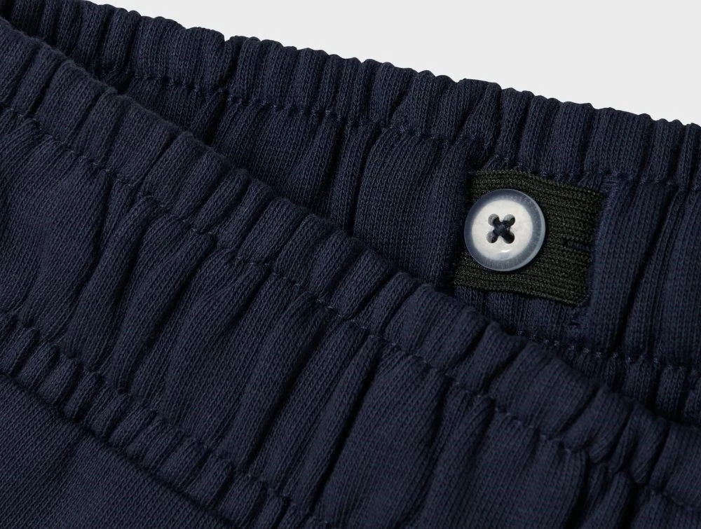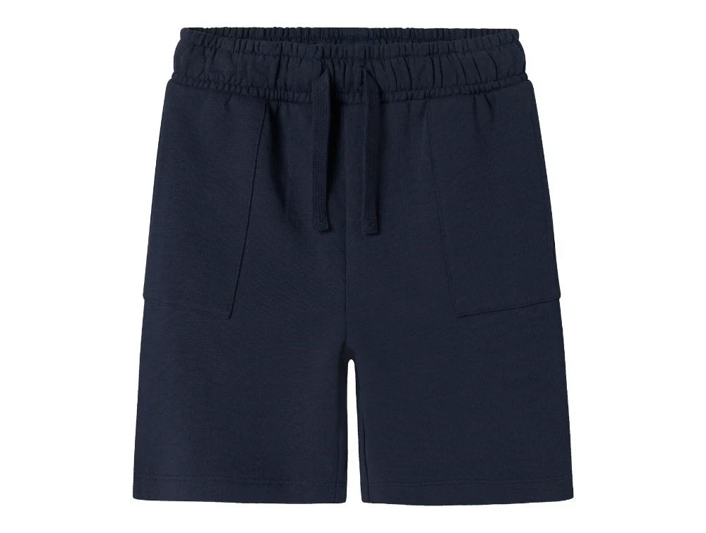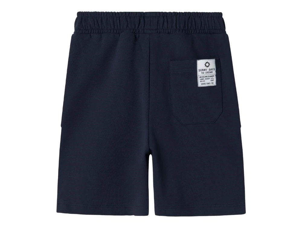 Mørkeblå sweatshorts med lommer og bindebånd fra Name It 13244129 navy blazerMørkeblå sweatshorts med lommer og tekstlabel fra Name It 13244129 navy blazerJusterbar knaphulselastik i mørkeblå sweatshorts fra Name It 13244129 navy blazer
