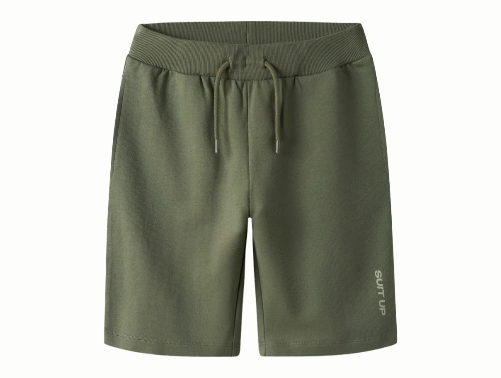 Name It sweatshorts i grøn nuance olivine med print på benetName It sweatshorts i grøn nuance olivine set på modelName It sweatshorts i grøn nuance olivine med elastik i taljenName It sweatshorts i grøn nuance olivine set bagfra