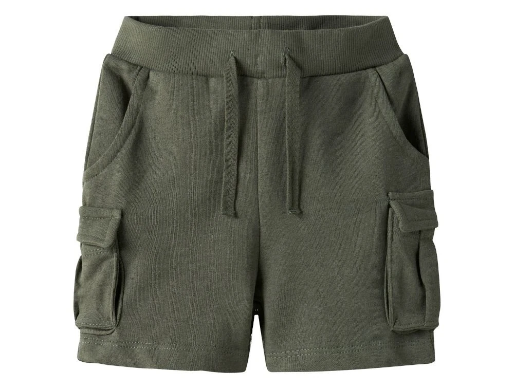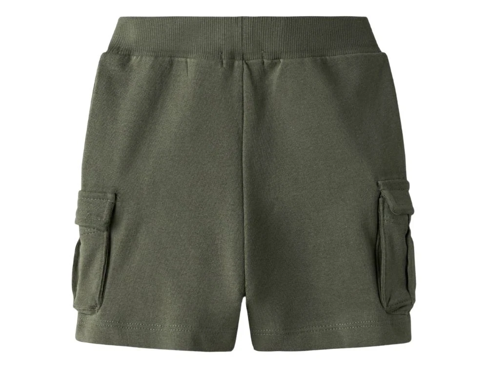 Cargoshorts i støvet olivengrøn sweatkvalitet fra Name It 13240417 dusty olive Cargoshorts i støvet olivengrøn sweatkvalitet fra Name It 13240417 dusty olive  bagfraJusterbar knaphulselastik i cargoshorts i støvet olivengrøn sweatkvalitet fra Name It 13240417 dusty olive