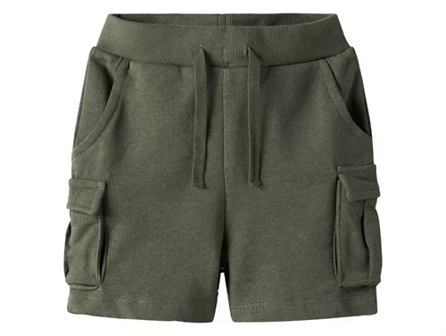 Sweatshorts i farven støvet mørkegrøn (dusty olive) med lommer fra Name It.