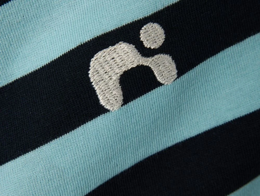• stribet mønster og broderet figur