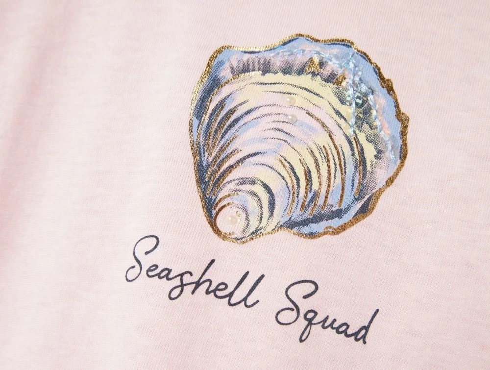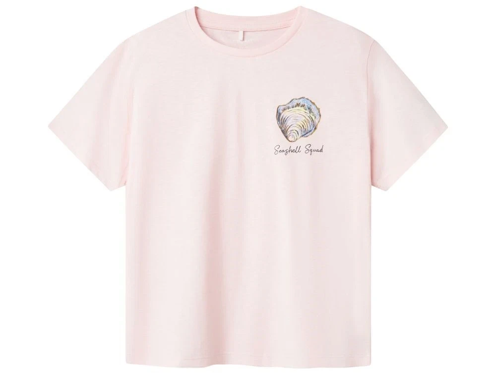 Cool t-shirt i lyserød med muslingprint fra Name It.
