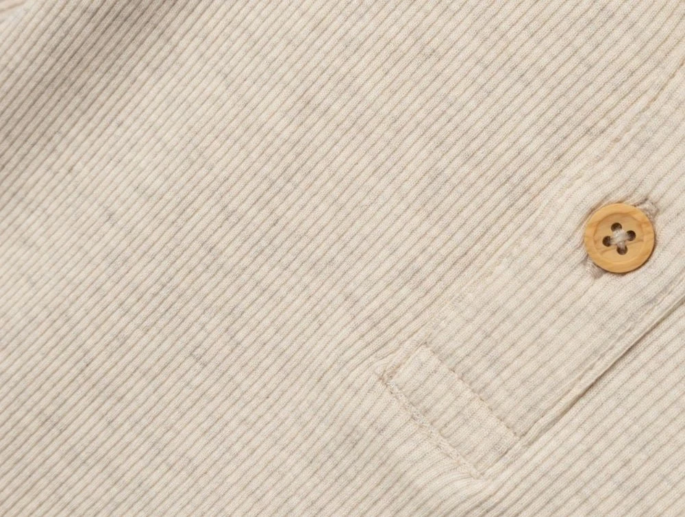 T-shirten er lavet i en blød ribkvalitet af økologisk bomuld og modal, som sikrer en behagelig pasform og god bevægelsesfrihed. Den har rund hals og korte ærmer samt to knapper ved halsåbningen, som tilføjer en fin detalje og gør den nem at tage af og på.