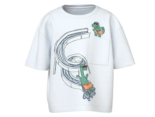 Mere information om Name It t-shirt bright white pool med vandrutsjebane og brystlomme