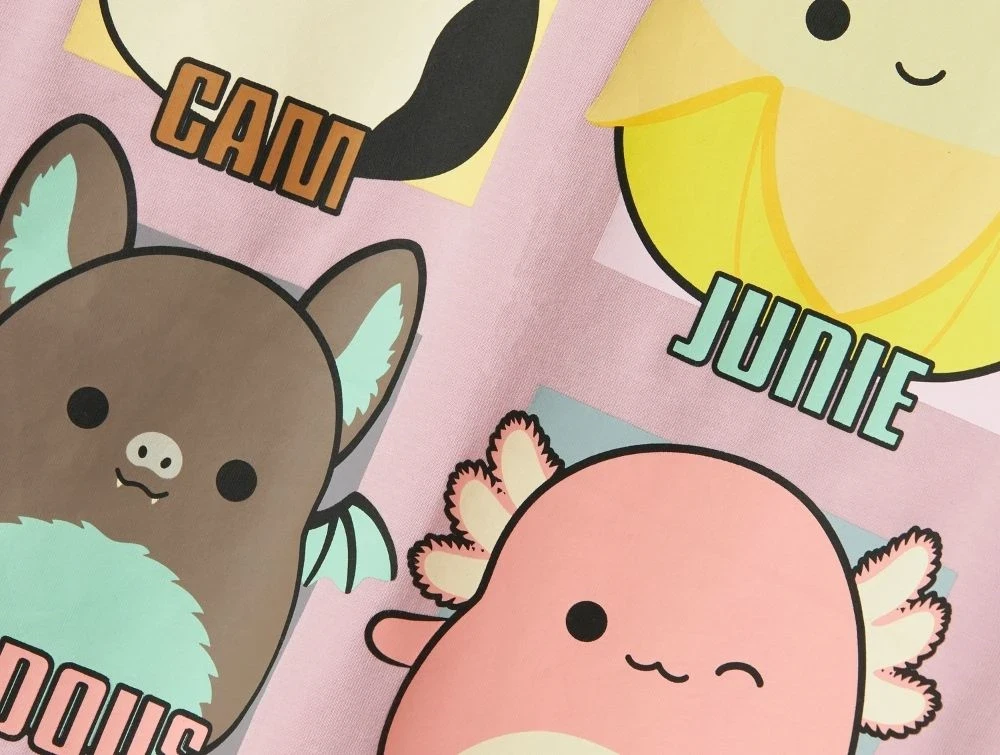 Pink t-shirt med Squishmallows figurer og afslappet pasform