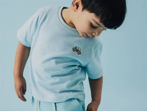 Name It T-shirt i turkis med broderet bil og blød jerseykvalitet